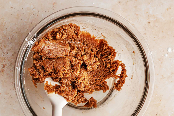 در سومین مرحله از طرز تهیه کیک دارچینی، در یک کاسه کوچک تمام مواد فیلینگ را با هم مخلوط کنید تا حسابی ترکیب شوند. با کمک دستان خود، گلولههای کوچکی از فیلینگ دارچینی درست کنید.