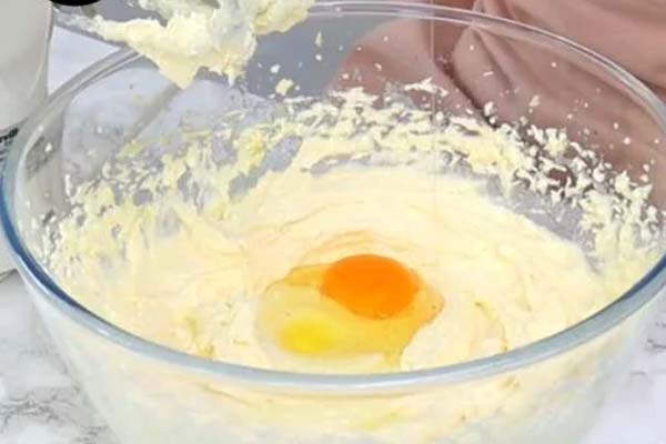 در دومین مرحله از طرز تهیه کیک ردولوت کافی شاپی به سراغ کره، روغن نباتی و شکر بروید. مواد را با برای سه دقیقه با دور تند هم بزنید تا حالت خامهای پیدا کند. در نهایت باید مخلوطی سبک و کرم رنگ داشته باشید. تخممرغهایی که به دمای محیط رسیده اند را یکییکی داخل کاسه بریزید و برای ۱۵ ثانیه خوب هم بزنید. در ادامه وانیل، سرکه و رنگ خوراکی قرمز را هم داخل کاسه بریزید. مواد را برای یک تا دو دقیقه مخلوط کنید. در نهایت همزن را کنار گذاشته و با دستان خود خمیر را آماده کنید.