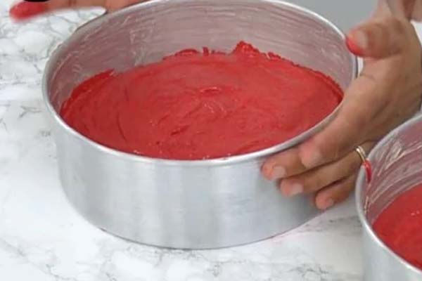نکته: افزودن سرکه به مایه کیک، به پر رنگتر شدن رنگ قرمز و مخملی شدن آن کمک خواهد کرد.
