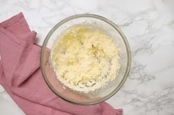 در اولین مرحله از طرز تهیه فراستینگ کیک ساده باید در یک کاسه بزرگ کره را برای پنج دقیقه با سرعت متوسط رو به پایین بزنید تا در اصطلاح رنگپریده شود. نیمی از شکر گفتهشده را اضافه کنید سپس با سرعت کم هم بزنید تا شکر کمی نرم شود بعد مابقی شکر را اضافه کنید. حال سرعت همزن را متوسط رو به زیاد کنید و برای پنج دقیقه دیگر هم بزنید. حال شکر کامل با کره مخلوط شده است.