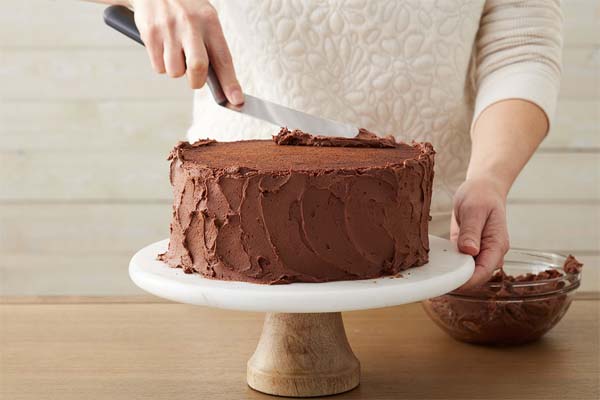 فراستینگ شکلاتی، جذابیت ظاهری کیکتان را دو برابر خواهد کرد پس برای تهیه آن میتوانید مراحل زیر را پیش ببرید. در ابتدا یکدوم فنجان کره را برای پنج دقیقه با همزن بزنید تا در اصطلاح رنگپریده شود. سپس یکو سهچهارم فنجان شکر و چهار قاشق غذاخوری پودر کاکائو را داخل کاسه ریخته و هم بزنید. سپس یک و یکدوم قاشق غذاخوری شیر را هم به همراه یک قاشق چایخوری وانیل به مواد اضافه و هم بزنید. فراستینگتان آماده است. در صورت غلیظ بودن مجدد کمی شیر بریزید. در نهایت مایه شکلاتی را داخل یخچال بگذارید تا کمی خودش را بگیرد. کیکها را لایهلایه کنید و فراستینگ را روی آنها بمالید. اگر تهیه فراستینگ برایتان دشوتر است از روش بن ماری استفاده کنید.