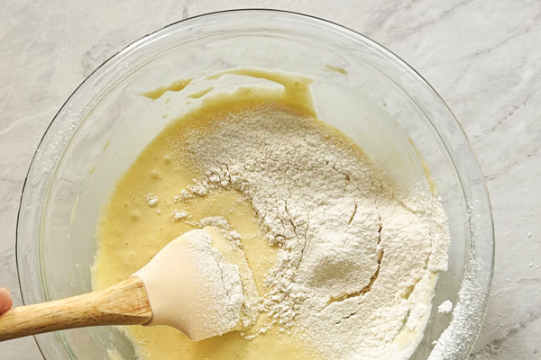 مرحله سوم: آرد و نشاسته ذرت را اضافه کنید
