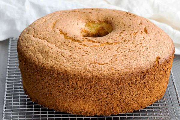 پس از پایان پخت، بلافاصله قالب را از فر خارج کرده و برعکس (سر و ته) روی توری فلزی قرار دهید. این کار باعث میشود کیک حین خنک شدن، ساختار پفدار خود را حفظ کند.