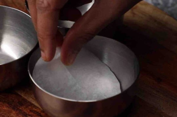 در سومین مرحله از طرز تهیه کیک فنجانی بدون تخمه مرغ باید فنجان های پخت کیک را کنار دست‌تان بگذارید. آن‌ها را کمی با روغن چرب کنید. ته یکی از فنجان‌ها را روی کاغذ روغنی بگذارید و برش دهید. کاغذ روغنی‌های برش‌خورده را داخل فنجان‌ها بیاندازید تا از چسبیدن مایه کیک جلوگیری کند. سه‌چهارم فنجان‌ها را مایه کیک بریزید. فنجان‌ها را روی سطح کارتان دو تا سه بار زمین بزنید تا حباب‌های اضافه آن از بین برود. از طرز تهیه کاپ کیک شکلاتی برای فرزندان‌تان غافل نشوید.