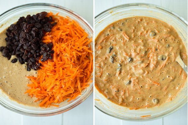 در چهارمین مرحله از طرز تهیه کیک هویج با شیر ، هویج را با رنده درشت رنده کنید. در صورت تمایل برای اضافه کردن کشمش، آن را باید از یک ساعت قبل خیس کنید. سپس آنها را آبکش کرده و به همراه هویج به مایه خمیر اضافه کنید. طرز تهیه کیک هویج خانگی را هم میتوانید امتحان کنید.