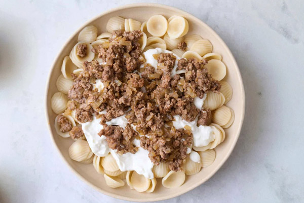 آموزش پخت ماکارونی به سبک ترکی با گوشت چرخ کرده و سس ماست