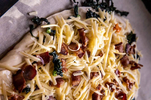 در ادامه، پنیر گودای نرم و شیرین را همراه با پنیر چدار تند روی سبزیجات بریزید. این ترکیب پنیرها با سس کدو تنبل تند، طعمی عالی و متعادل ایجاد میکند. در پایان، چند تکه بیکن تردشده کاپو را روی پیتزا اضافه کنید؛ بیکن با طعم شور و خاص خودش، حس دلپذیری به پیتزا میدهد. شاید ترکیب بیکن با کدو تنبل کمی غیرعادی بهنظر برسد، اما مطمئن باشید نتیجهاش فوقالعاده خواهد بود.